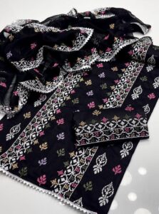 3 PCs Women’s Unstitched Cotton Embroidered Suit