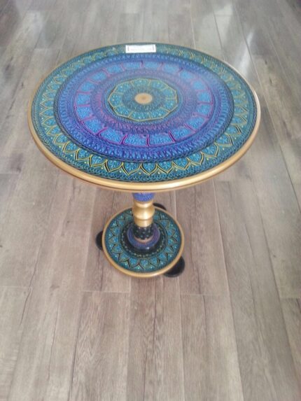 Elevate your interior with our Handmade Wooden Lacquer Table, a vibrant masterpiece of traditional artistry. Featuring intricate, hand-painted floral and geometric patterns, this table serves as both a functional furniture piece and a stunning conversation starter. Perfect as a side table or a decorative accent.