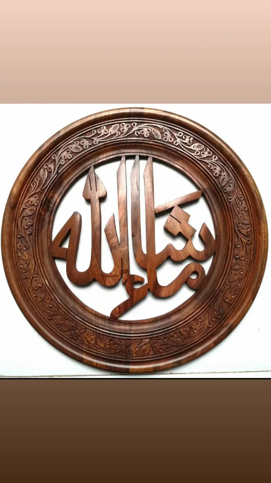 منفرد ڈیزائن: یہ آرٹ پیس خالص لکڑی اور میٹل کی خطاطی (Calligraphy) کا ایک ایسا سنگم ہے جو دیکھنے والوں کو دنگ کر دیتا ہے۔