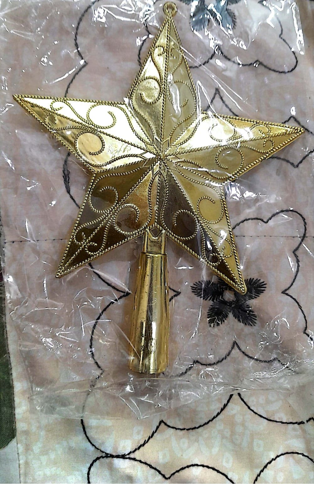Top Star for Christmas Tree with Red Ribbon and Green Leave